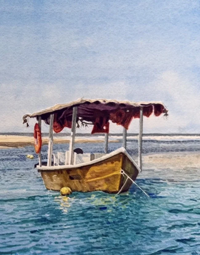 River Boat began as a project during a family trip to Tamarindo, Costa Rica in early 2026. While walking along the Río Tacasolapa, I was struck by a small fleet of river boats used to tour Las Baulas National Marine Park. Their surfaces were heavily weathered, layered with multiple coats of faded paint, while a tattered sun cover draped across one vessel emphasized its long exposure to the coastal elements.